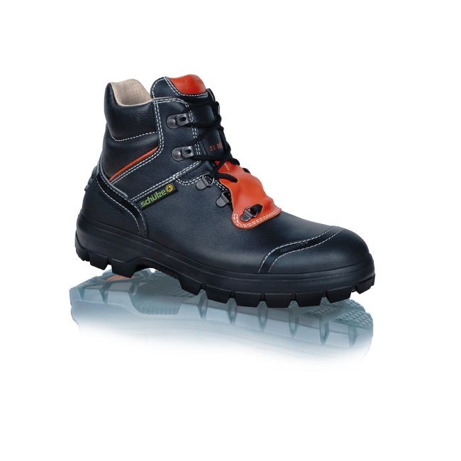 The SCHÜTZE STEELERS is designed for steel construction, featuring NOMEX® seams and laces that resist high heat from welding and grinding. Reinforced leather at the forefoot protects against hot materials and sparks, while waterproof leather resists oil and dirt.
